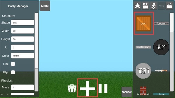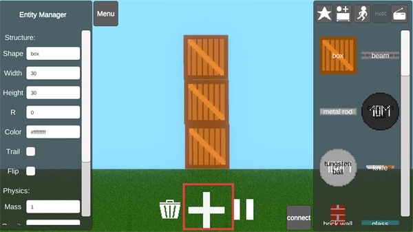 3、在【Lawn】场景中,通过点击【+】按钮堆叠【box】模块,搭建竖状木板结构,熟悉模块拼接逻辑。