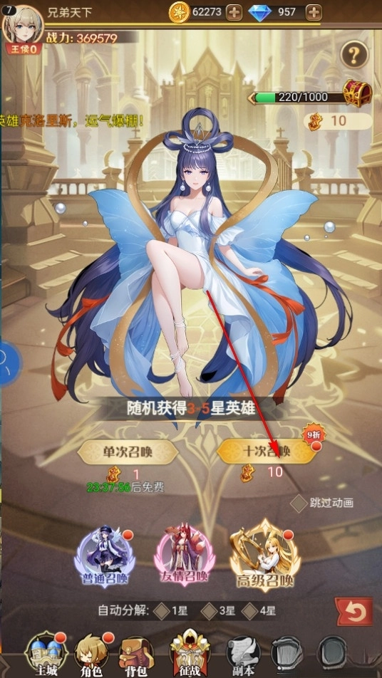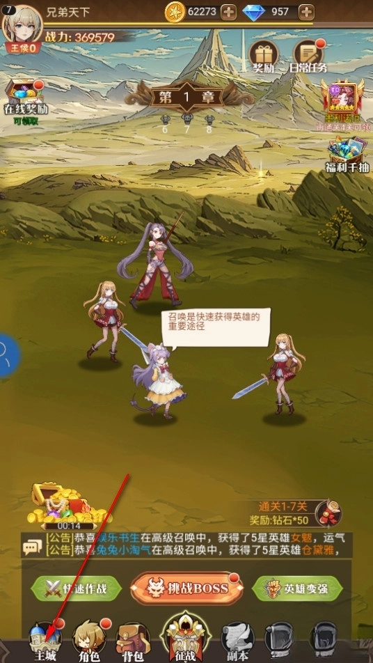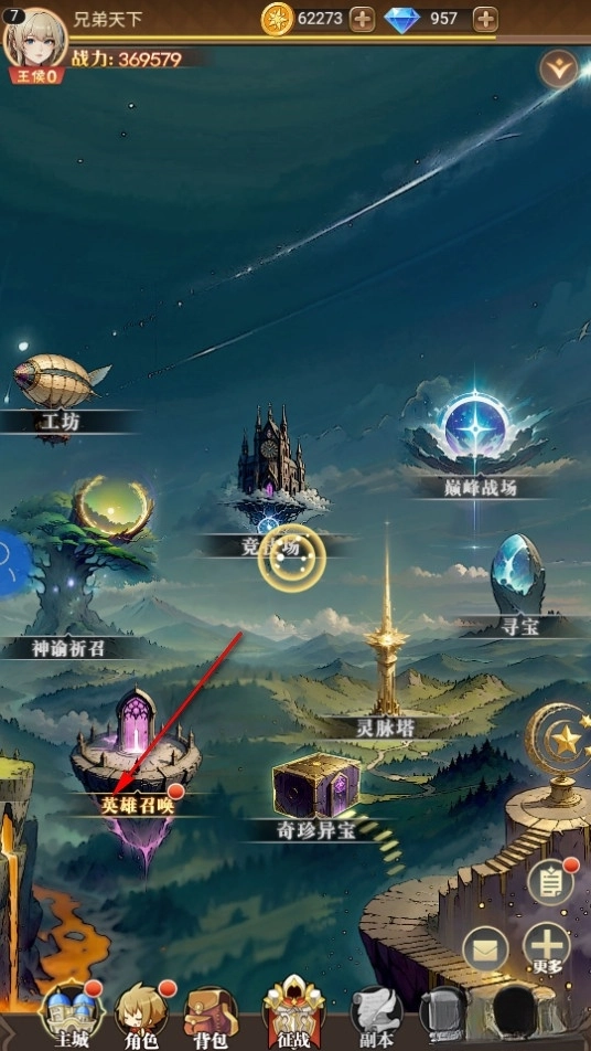 在主城界面点击英雄召唤。