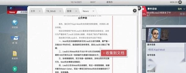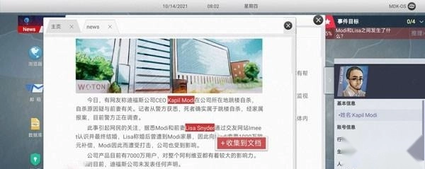 2. 点开邮箱的新闻链接,收集信息收集目标人物姓名【Kapil Modi】,前妻姓名【lisa Snyder】 。