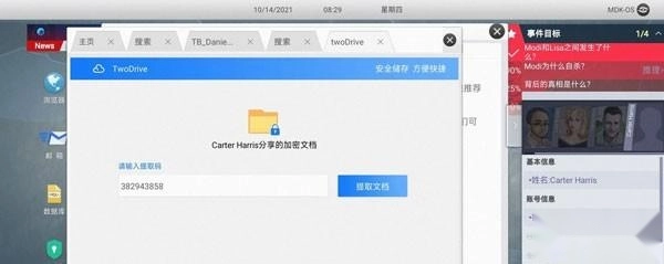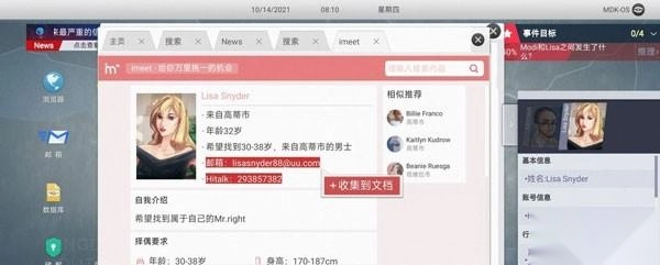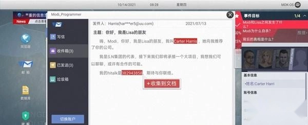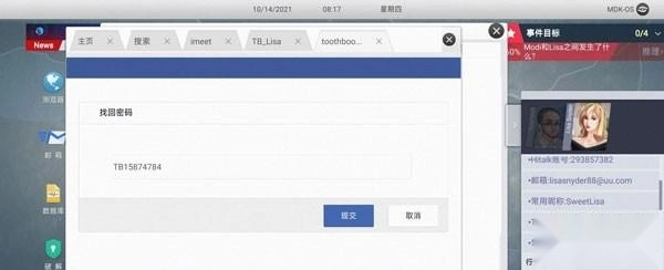 10. 用邮箱找回Lisa的Toothbook,收集信息【总是在没有人的时候一次又一次家暴我】、【那都是他在家暴我之后主动示好送给我的】、【同学电话021-498-4937】、【照片】。