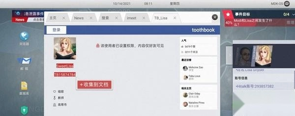 7. 点击Toothbook,收集到的常用昵称是【SweetLisa】,对应的Toothbook账号为【TB15874784】。