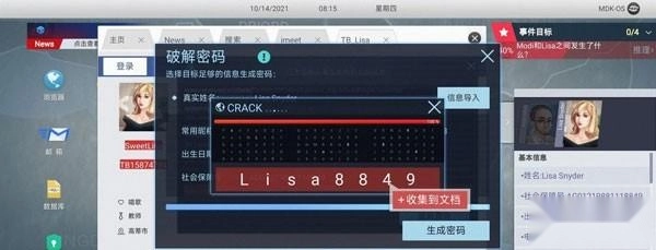 8. 打开数据库,拖入Lisa相关信息,获取其他信息,在中输入名字信息导入后,生成密码【Lisa8849】。