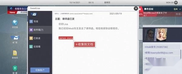 9. 登录Lisa邮箱,收集;【James Joyce】、【电子账单图片】。