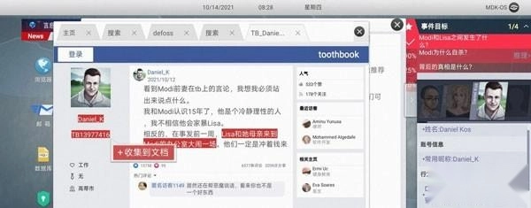 16. 在浏览器中输入【Daniel Kos】访问Toothbook平台,收集【Daniel_K】、【TB13977416】以及【Lisa和她母亲】相关信息。