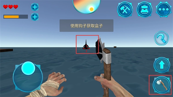 3、海上也会漂泊各种物品和资源让玩家通过钩子来钩去获得并开始生存;