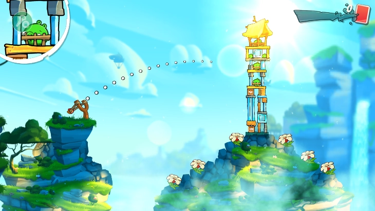 一直拖动小鸟能够调整发射方向,左上角还能看到小鸟大致掉落位置的细节。
