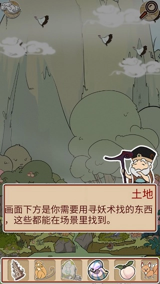 画面下方是需要用寻妖术寻找的物品,这些都可以在场景里找到。