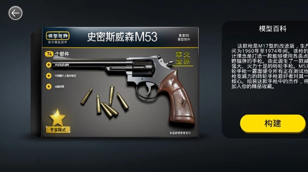 1、挑选自己心仪的组装图形,也可以在“我的收藏”里查找,找到后点击模型中要组装的图形及其对应的模型图案,我就以“史密斯威森M53”来举例说明。