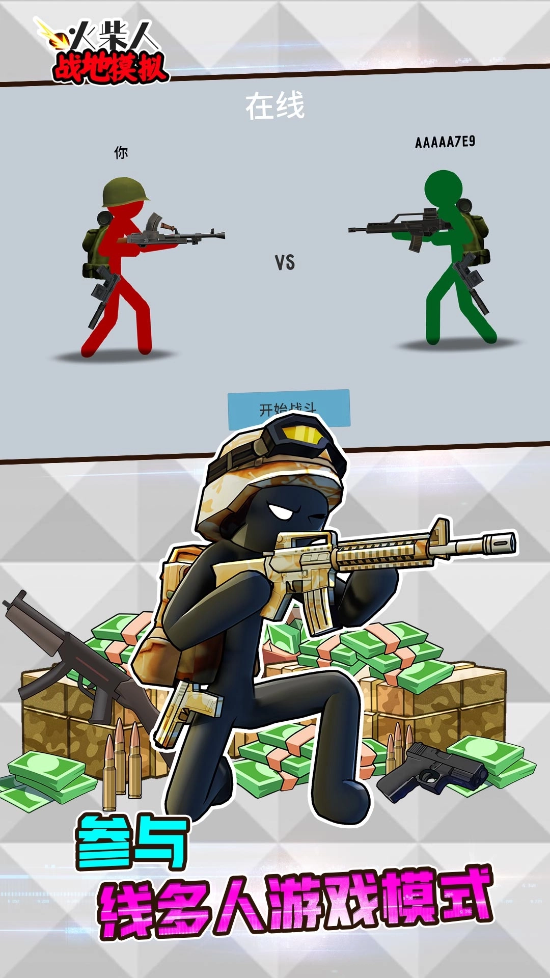 采用别具一格的火柴人卡通游戏画风,结合新颖的玩法,打造出紧张刺激的战斗氛围。