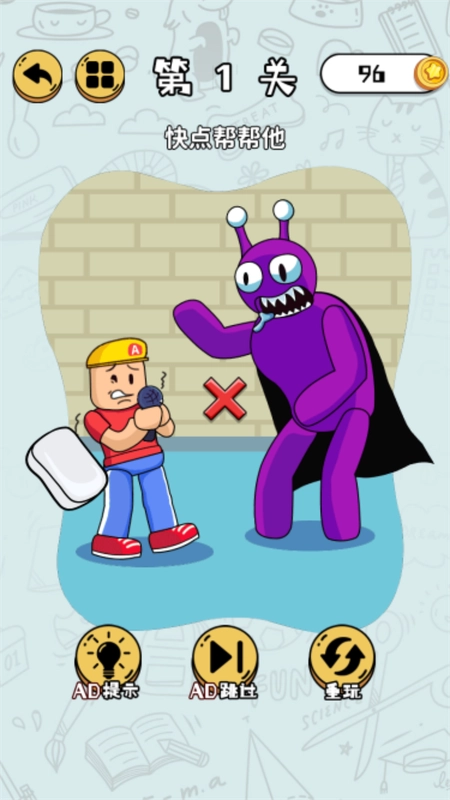 3、每一关都具备独一无二的设定,得跳出常规思维的局限,尝试各式各样的擦除位置与方法,去应对那些千奇百怪的搞怪情境。