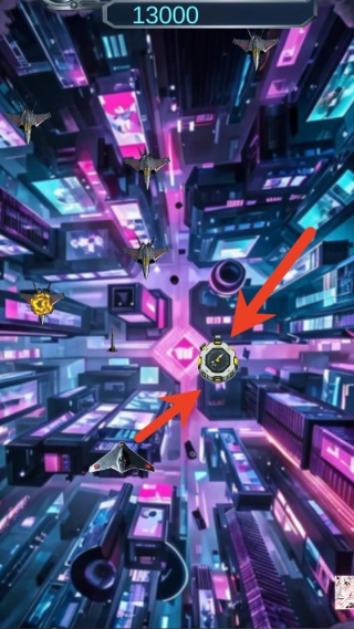 3、在躲避子弹的过程中,你得努力击落所有袭来的敌机,同时留意收集它们掉落的能力强化道具,像火力提升、护盾或者能量球,等能量积满就能释放震击。