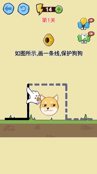 2.玩家的任务是通过画线的方式保护狗头,使其不被蜜蜂叮咬。