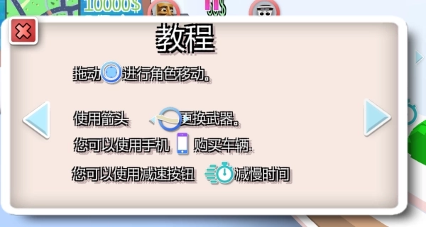 3、熟悉基础操作教程,比如角色移动、武器使用、车辆购买等内容。