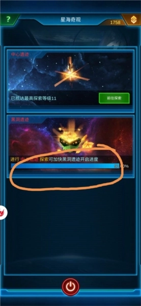 需要注意:黑洞遗迹的技能升级途径只有两个——氪金或者使用星海结晶。因此,在中心遗迹获取到的星海结晶,建议不要用于升级中心遗迹的技能,而是留存下来专门用于黑洞遗迹的技能升级。
