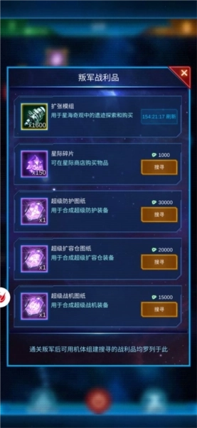 4.叛军的战利品列表:可用2000机体组建兑换1600模组,冷却时间7天。赶紧通关叛军吧!