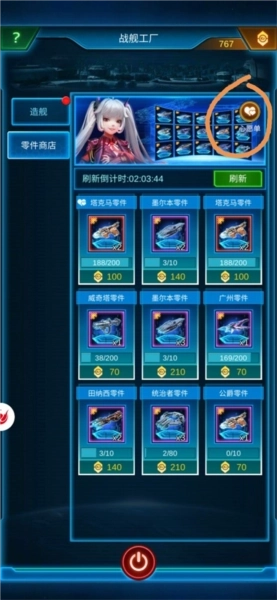 十、零件商店:可设置心愿单,每3小时会刷新出你所需战舰的零件。有机会能用多余的战舰零件进行兑换,无需花费氪金,做任务时记得多留意一下。
