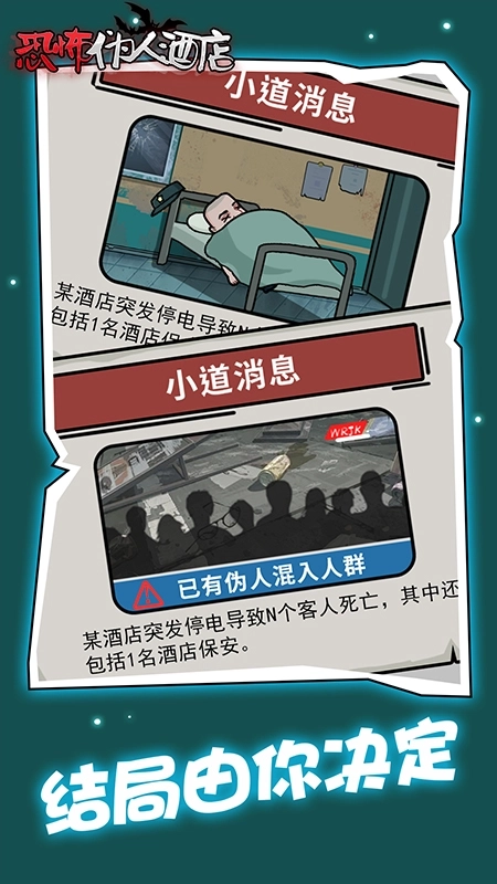 《恐怖伪人酒店》是一款休闲益智类游戏,玩家需要在游戏中依据已知资料分辨出伪人与正常住客。在这里,你能体验到与伪人和怪物对抗的紧张刺激感,游戏画面卡通可爱,快来感受一番吧,你能拯救多少住客呢?