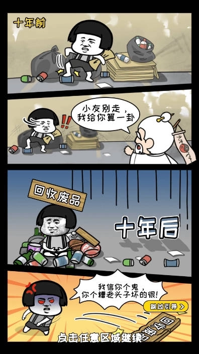 玩家将化身收破烂的小蔡吉,在仙人指引下收集海量破烂,修炼顶级仙法,结识各路道友、拓展专属地盘、合成强力神器、收服稀有神兽,历经渡劫终成仙人,登顶人生巅峰!游戏中玩家的形象是搞怪的熊猫人表情包,你本是收破烂的小蔡吉,在垃圾仙人的教导下收集更多破烂,还能踏上修仙之路,合成专属法器,解锁更多地图作为自己的地盘,向着人生巅峰迈进吧!
