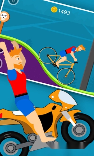 玩家可以驾驶自己的自行车,使用不同的道具来闯关;