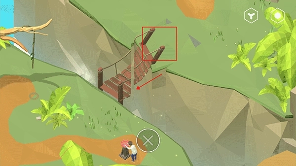 7、在屏幕上向左或向右滑动来控制移动,当把上方草地上的桥拼接完整后,就能到达对面了。