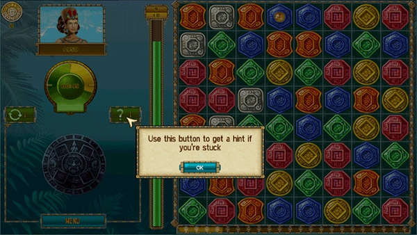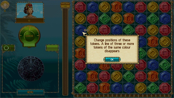 1、打开蒙特祖玛的宝藏2游戏后,通过点击方块来调整其位置,当有三条或三条以上相同颜色的方块连成一线时,这些方块就会被消除。