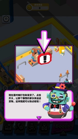 现在是时候去打宝和发货了,点击开关,让那个懒家伙来运货,这样我们就能快点赚钱啦!