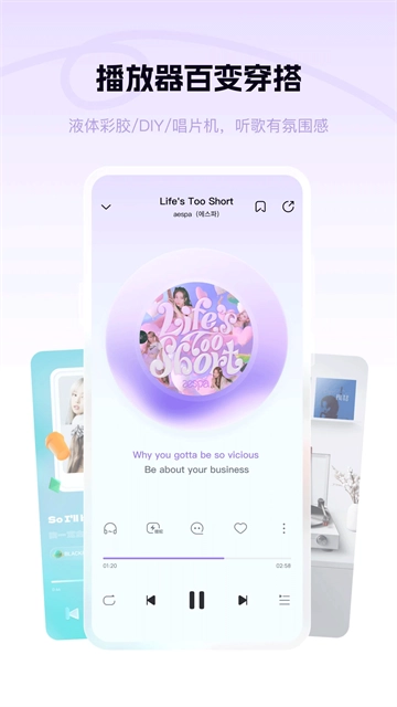 简约风格的旋转封面、支持个性化定制的创意“DIY模式”、兼具文学感与新意的“歌词字母”,还有沉浸式的“歌手照片”——总有一款风格契合您的审美偏好!