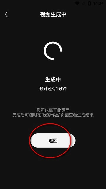 4、视频生成中会有点慢,可以先离开此页面点返回。