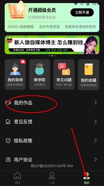 5、点右下角我的,进入我的作品中查看。