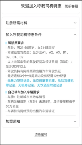 4、还能查看加入呼我司机特惠所需的条件,确认自己是否符合要求。