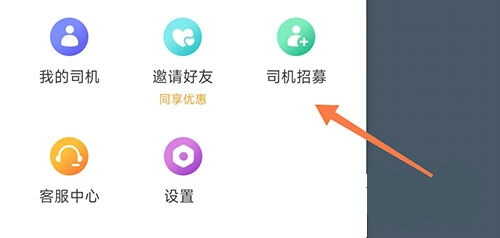 1、同样是在呼我出行左上角弹出的选框里,点击司机招募选项。