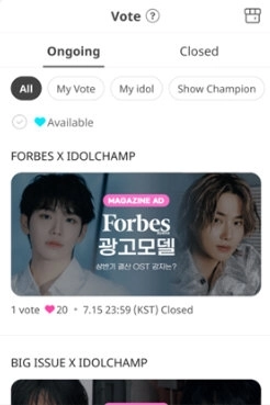 若您的艺人在IDOLCHAMP排行榜上每月位居榜首,我们将为其提供为期一个月的TVCF及特别福利。