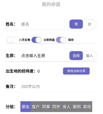 2.支持自定义分组功能,实现与天纪排盘电脑端命例展示的打通