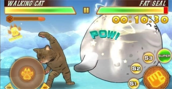 动物之斗是通过错位拍摄呈现动物奇趣脑洞的1v1趣味格斗游戏,像会打右勾拳的柴犬、身体藏在地下的强壮狐狸、仿佛直立行走的步行猫、能施展魔法的松鼠、乌鸦猩猩,还有秀肌肉的白鲸。只需按下方向键和技能键,就能轻松打出连招。