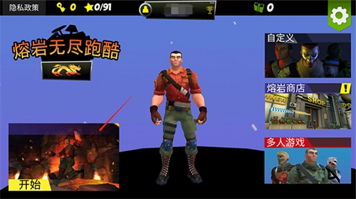 1、进入游戏后玩家点击画面左下角的开始按钮即可正式开始跑酷挑战;
