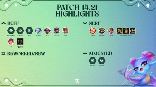 14.21 乃是我们的战术家皇冠补丁。我们始终聚焦于最具竞争力游戏的平衡性,同时针对尚未解决的问题给予增益。此版本亦是《英雄黎明》复兴版的最终版本,祝愿您在攀登贤者之路时好运连连!