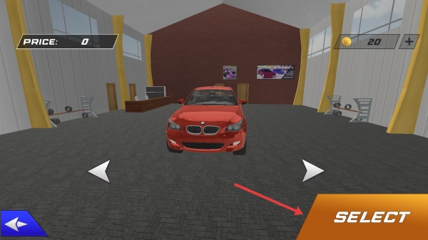 1、点“LET\'S DRIFT”,选红色赛车(点“SELECT”),进入赛道,准备漂移竞速。