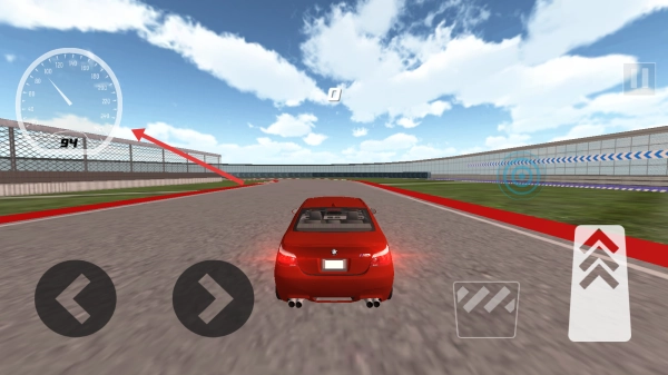 2、驾驶时,用虚拟按键控方向、油门,看仪表盘(时速),在弯道提前刹车、漂移。