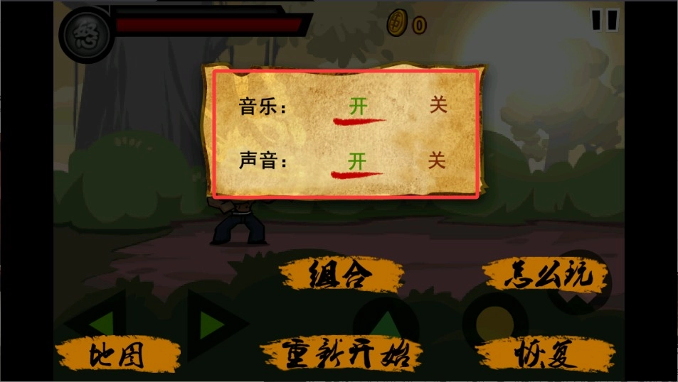 《功夫战士》的故事设定在山里的一个小村落,村中住着一位老武师和他的徒弟。某一天,一帮土匪闯入村子,老武师为了保护村民,不幸惨遭杀害。目睹师父遇害,徒弟悲愤交加,立下复仇誓言,随后便握紧拳头踏上了复仇之路。 这款游戏属于横版格斗类型,玩家操控这位徒弟一路过关斩将,在游戏过程中,玩家可以学习15套连招,会遭遇27关各具特色的敌人,每关还有实力强劲的守关角色。在战斗过程中,击败怪物能够获得金钱,利用这些金钱购买技能,能让攻击伤害更高。游戏画面十分绚丽,角色施展招式时,动作特效噼里啪啦,极具视觉冲击力。