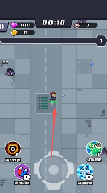 1、你能够直接点击中间的按钮来操控角色移动,当看到敌人时,角色会自动射击。