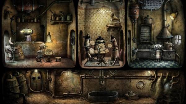 1、游戏难度评价:难度中上。之所以说偏中,是因为它符合多数解谜游戏的套路,采用大故事套小游戏的形式;而说它偏上,是由于在2009年的PC版能达到这样的水准,着实令人惊喜。并且其工业萌风格(还包含手绘格子漫画攻略),让人眼前一亮,后来得知是手绘的,就更觉惊艳。