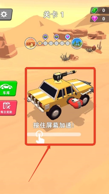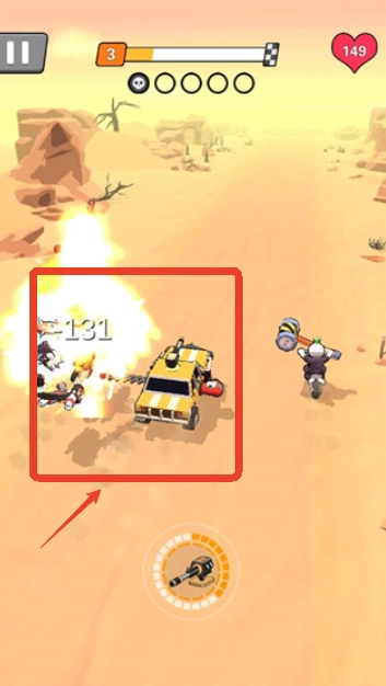 2、游戏开始后,点击屏幕,汽车便会向前行驶,当靠近敌人时,会自动发起攻击。