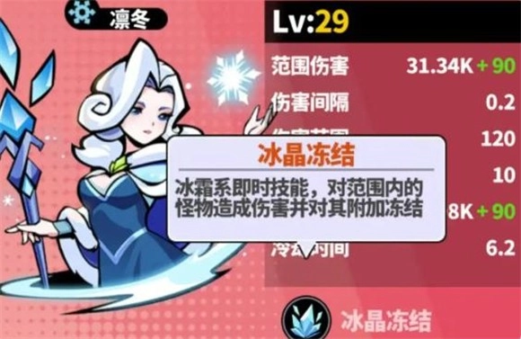 5、凛冬定位侧重于控制,拥有范围减速与冻结的效果。它能延缓敌人的推进节奏,特别是在怪物聚集或者初期火力匮乏的情况下,能够起到牵制敌人的作用。不过,凛冬的技能冷却时间比较长,技能作用范围也受到限制,即便经过强化,输出的提升幅度也不大。所以,凛冬更适合充当辅助角色,而不是作为主力输出角色。