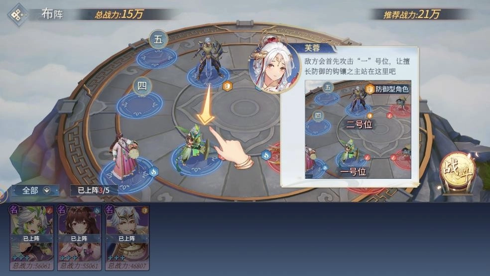 5、合理安排阵容,防御型英雄适宜处在“一”号位,承受伤害,充当队伍的稳固盾牌。