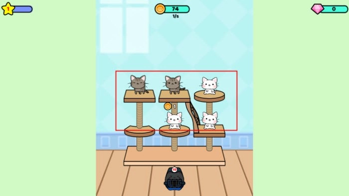 3、只需把两只品种相同的猫咪拖到一块儿,它们就会自动合成为更高级的猫咪。举例来说,白猫能合成灰猫,灰猫还能进一步进阶为花猫。你解锁的猫咪数量越多,获得的奖励也就越丰厚!