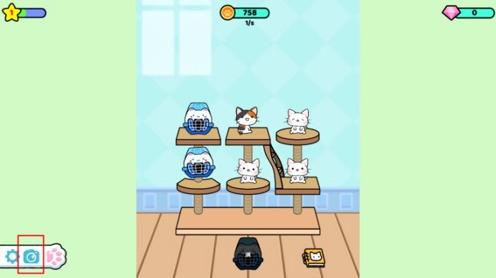 5、在游戏左侧,有个“猫爪”图标,它具备互动功能。点击其中的相机按钮,就能为你心仪的猫咪拍照留存。不仅如此,你还能够把照片保存下来,或者分享给好友,一同展示你最钟情的猫咪组合!