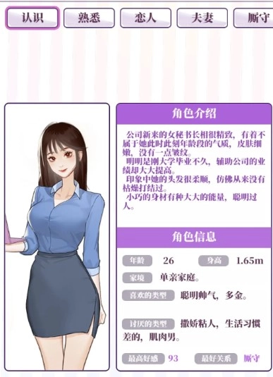 4、别具一格的性格设定,每个角色都具备鲜明的个性特点,玩家需要据此调整与之互动的方式。