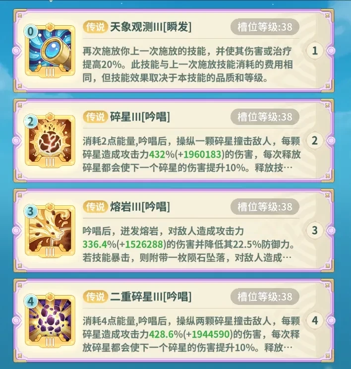法师对攻击与破击属性的依赖程度较高,因此在旅人牌的配置方面,应以具备攻击、破击效果的卡片为主。