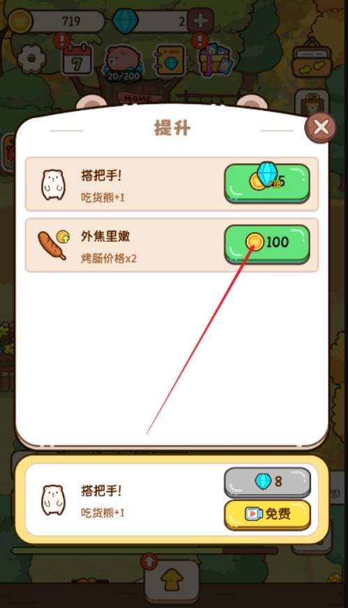 3、借助金币提升烧烤摊的各项属性,从而使生意更加红火。