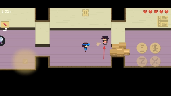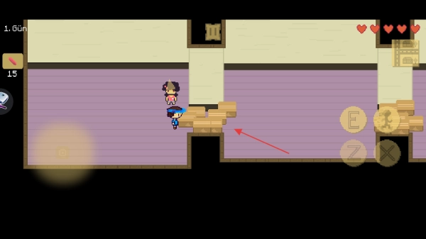 1、控制角色往箭头所指的木箱子方向移动。